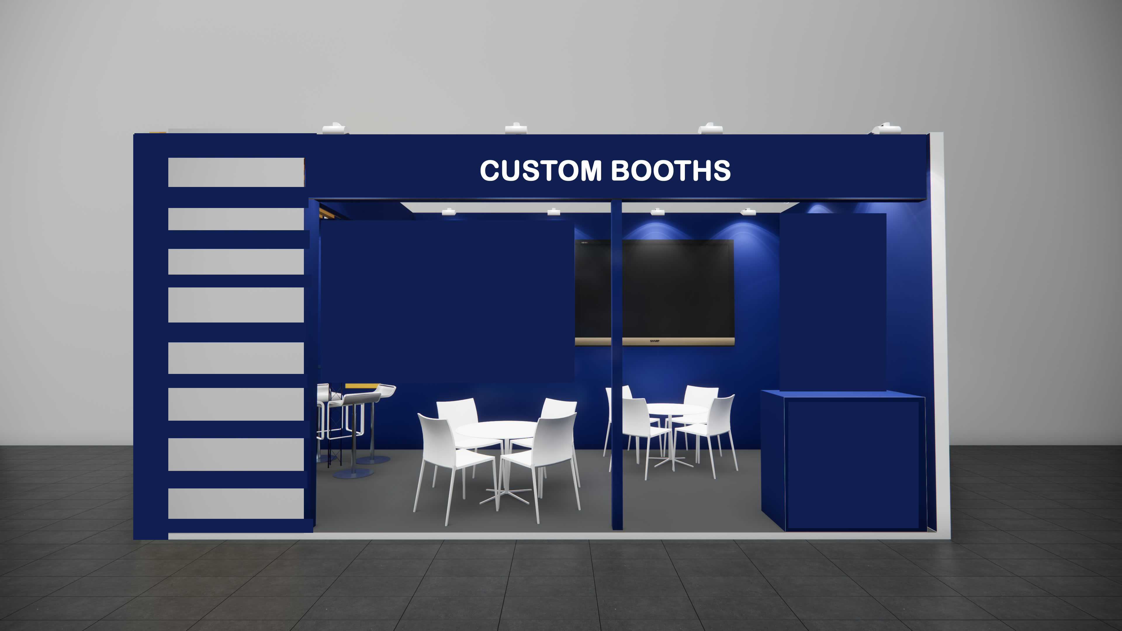 Custom branded shell scheme stands with seamless walling and integrated lighting, providing a professional turnkey solution for exhibitors.